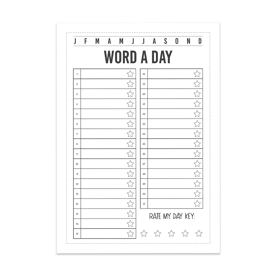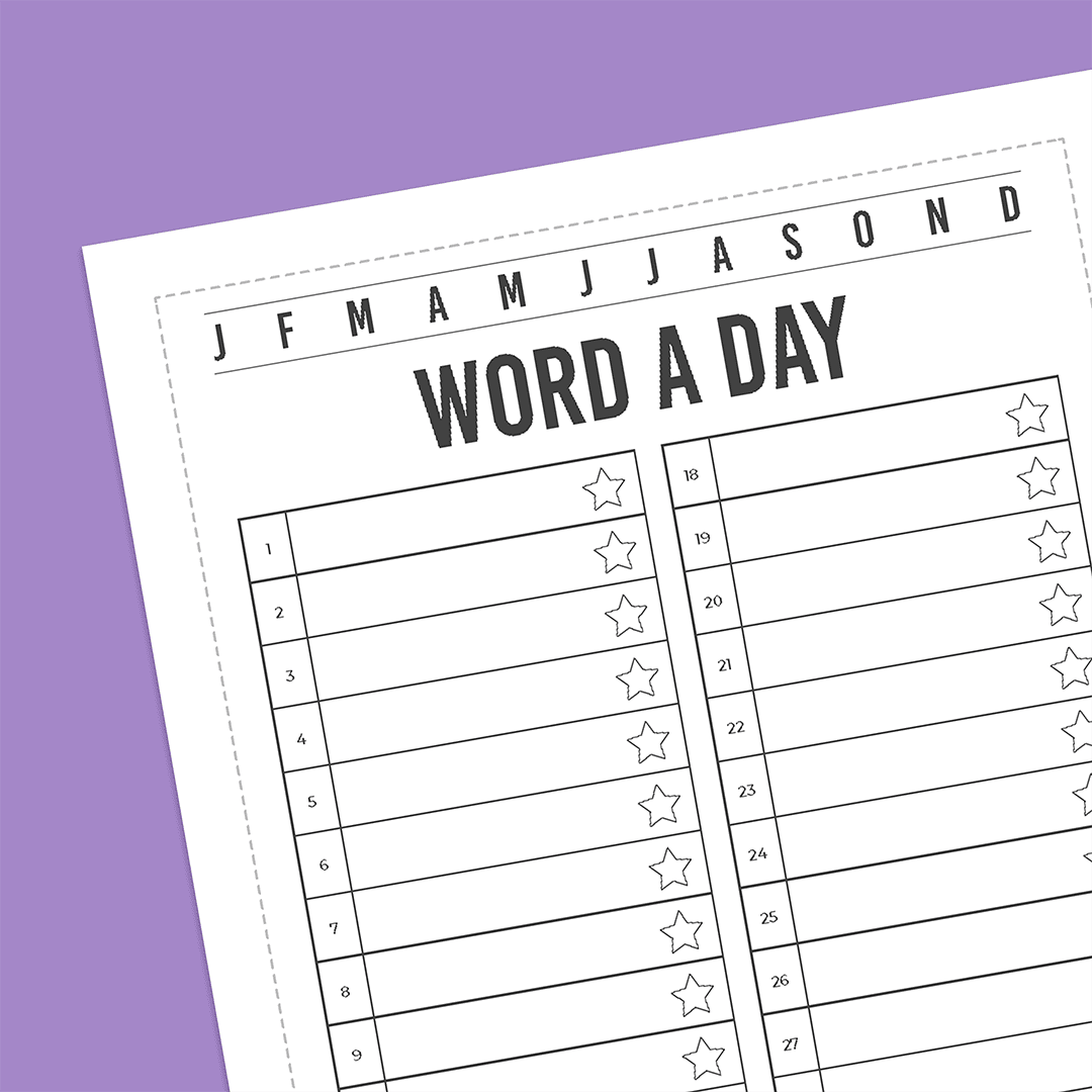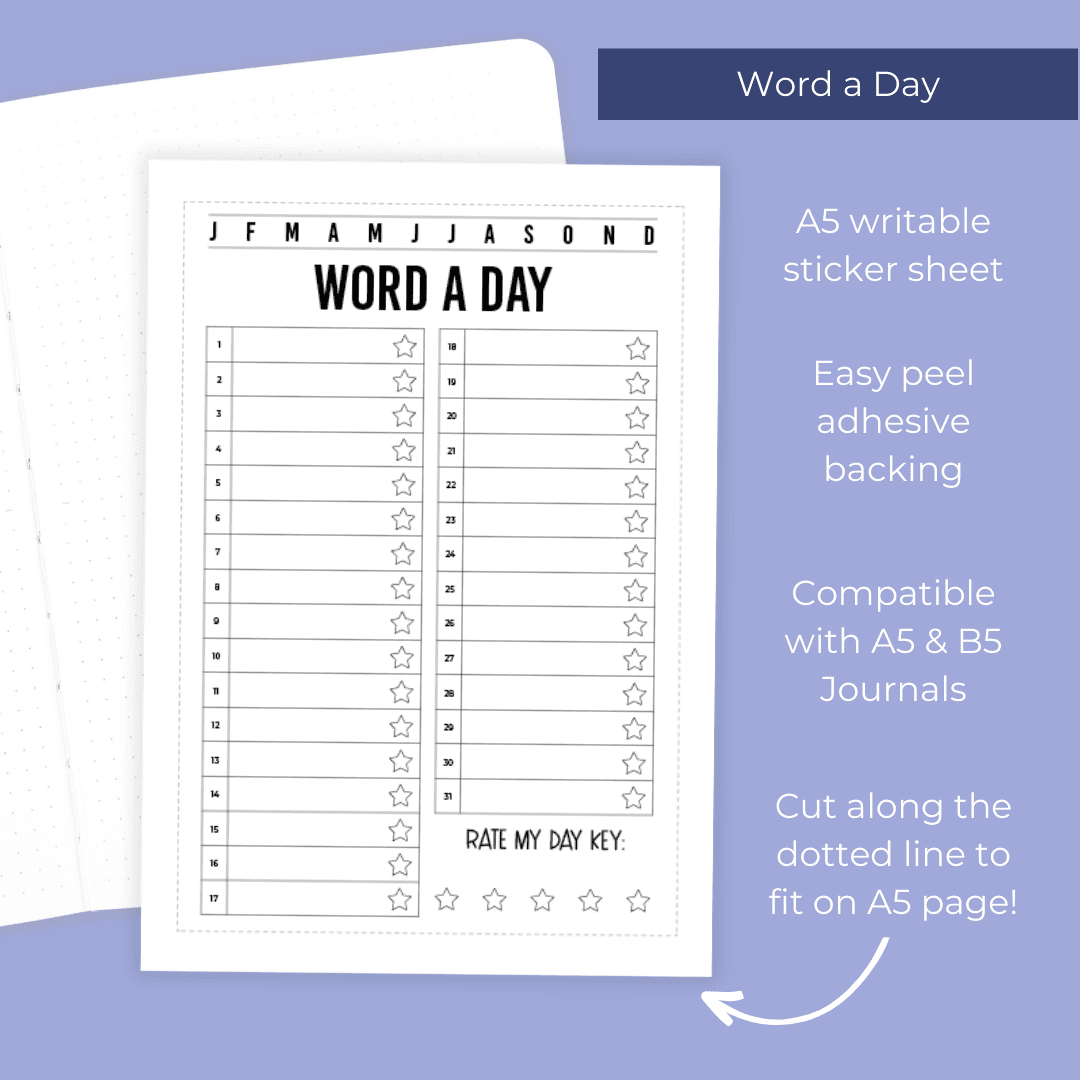 This Word a Day full-page journal sticker is a fun, low-pressure way to build a daily writing habit in your planner or journal. Designed to cover a full page, it gives you space to note one word for each day of the month, whether that’s a mood, highlight, intention, or small memory you want to remember. The numbered layout runs from 1 to 31, making it easy to use no matter the month.