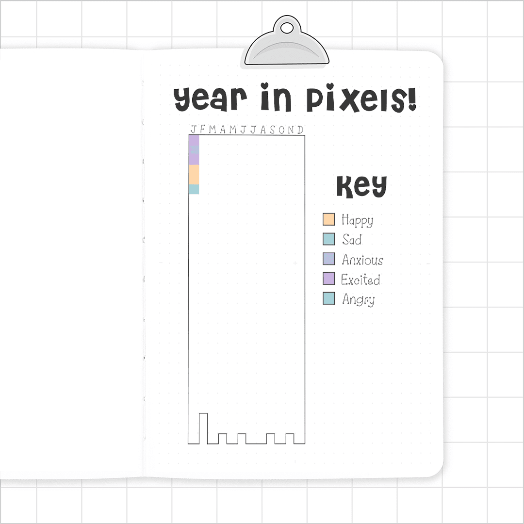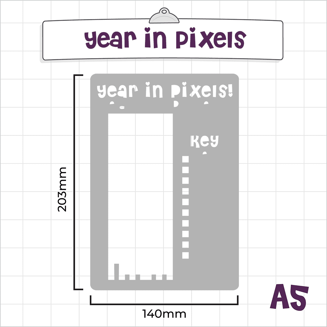 Our Year in Pixels stencil is perfect for tracking habit, mood or even the weather over the course of the year. Each day is represented by a single 5 x 5mm box within the tracker.